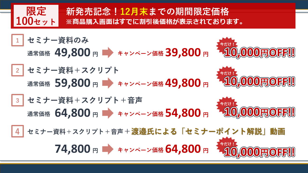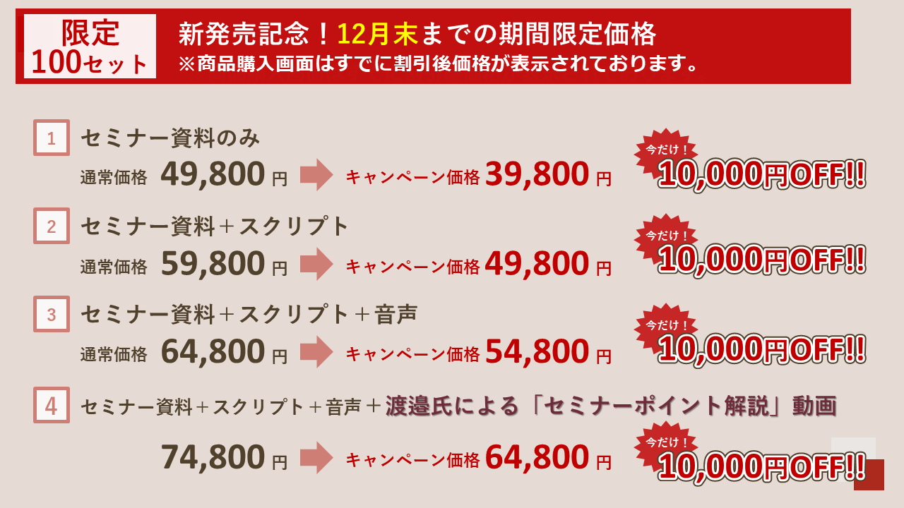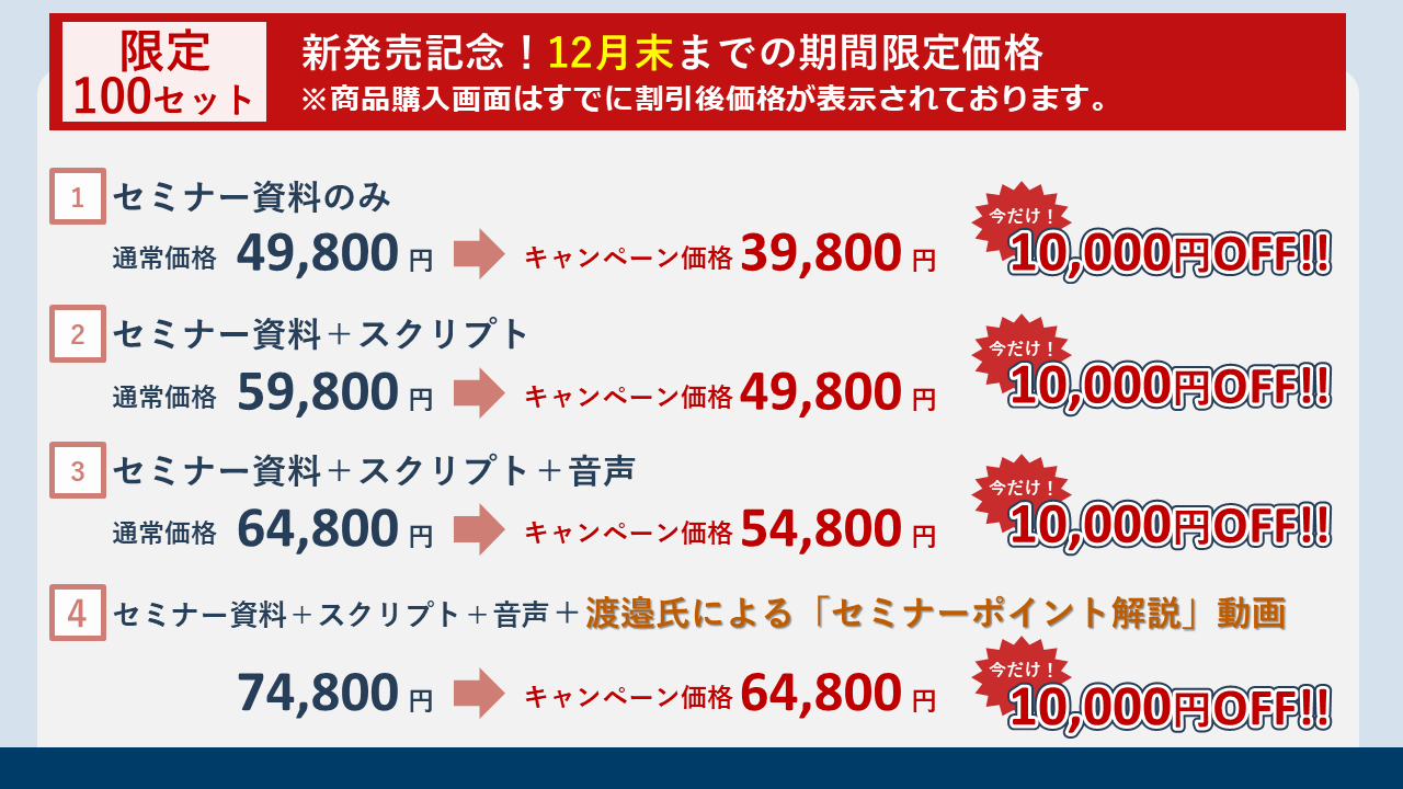 購入手続きへ進む【デザインC ※残りわずか】セミナー資料+スクリプト+音声+セミナーポイント解説動画