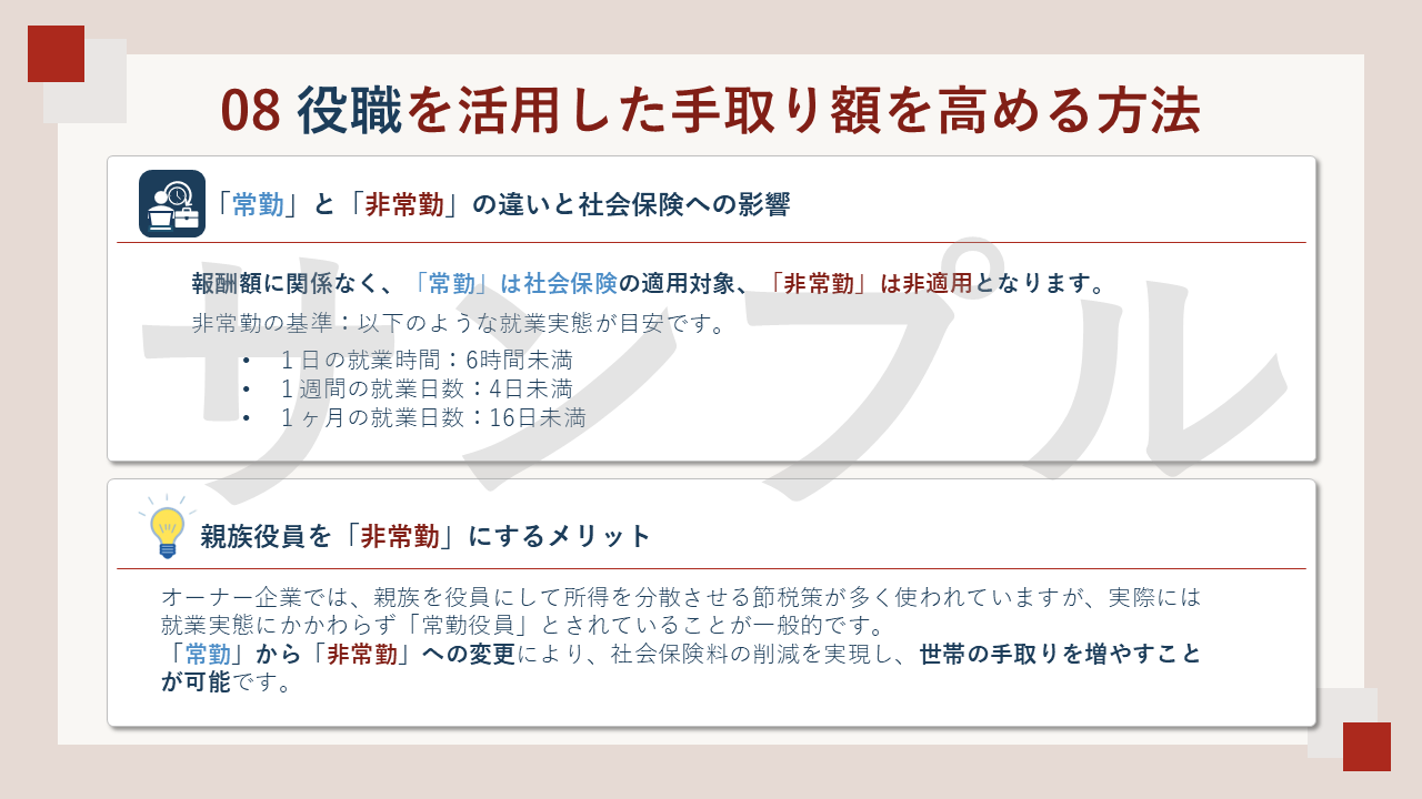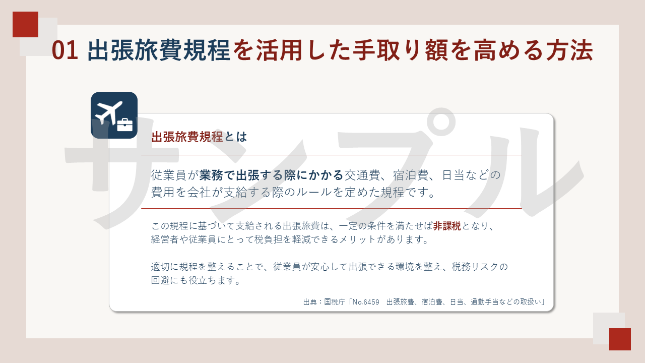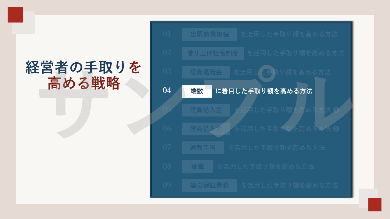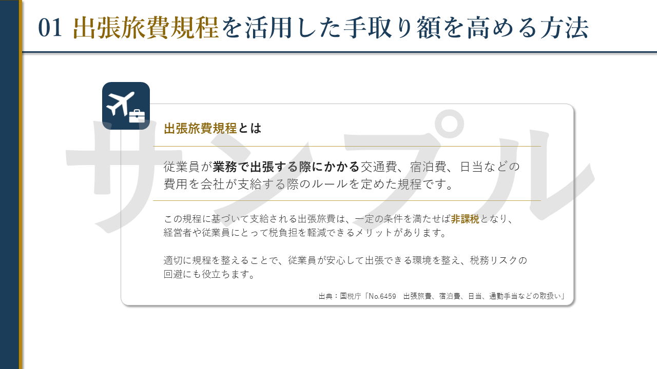 このセミナー資料は「経営者の手取りを高める戦略」というテーマで構成されており、中小企業経営者の皆さんへ向けた、セミナーの開催を目的として作ったものです。