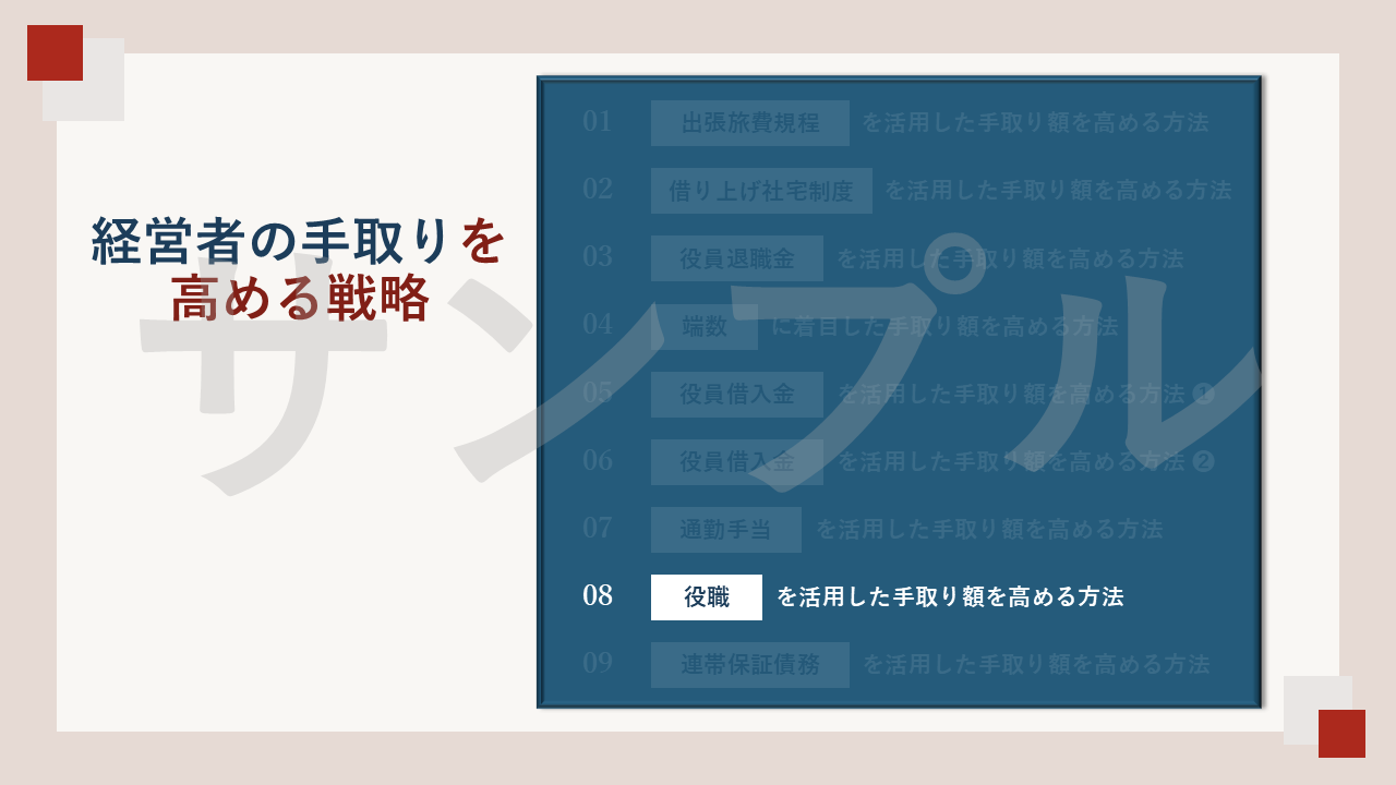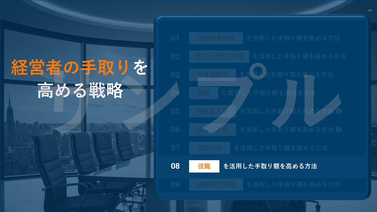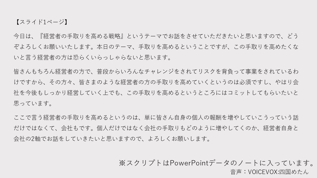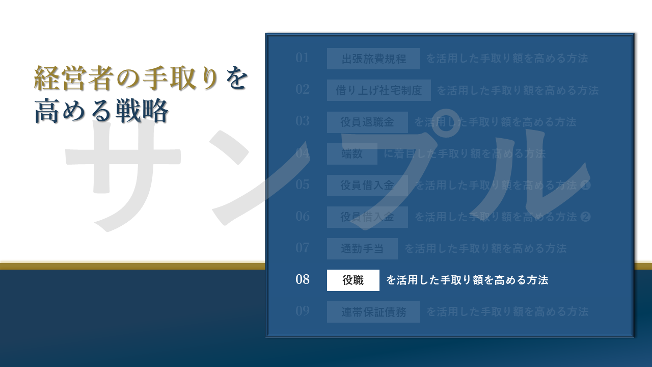 具体的な話し方のポイントをまとめておりますので、ぜひご自身で「経営者の手取りを高める戦略」セミナーの開催を目指してもらえたらと思います。どうぞよろしくお願いいたします。