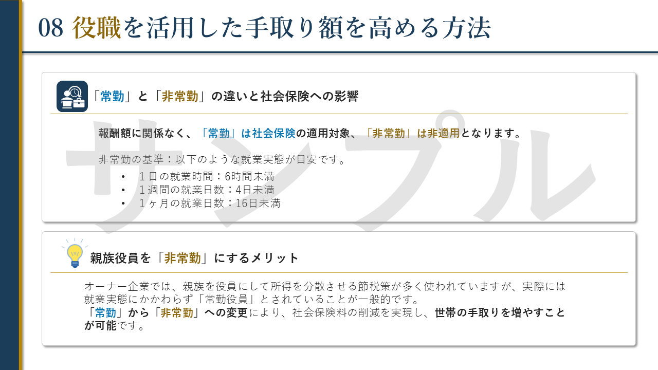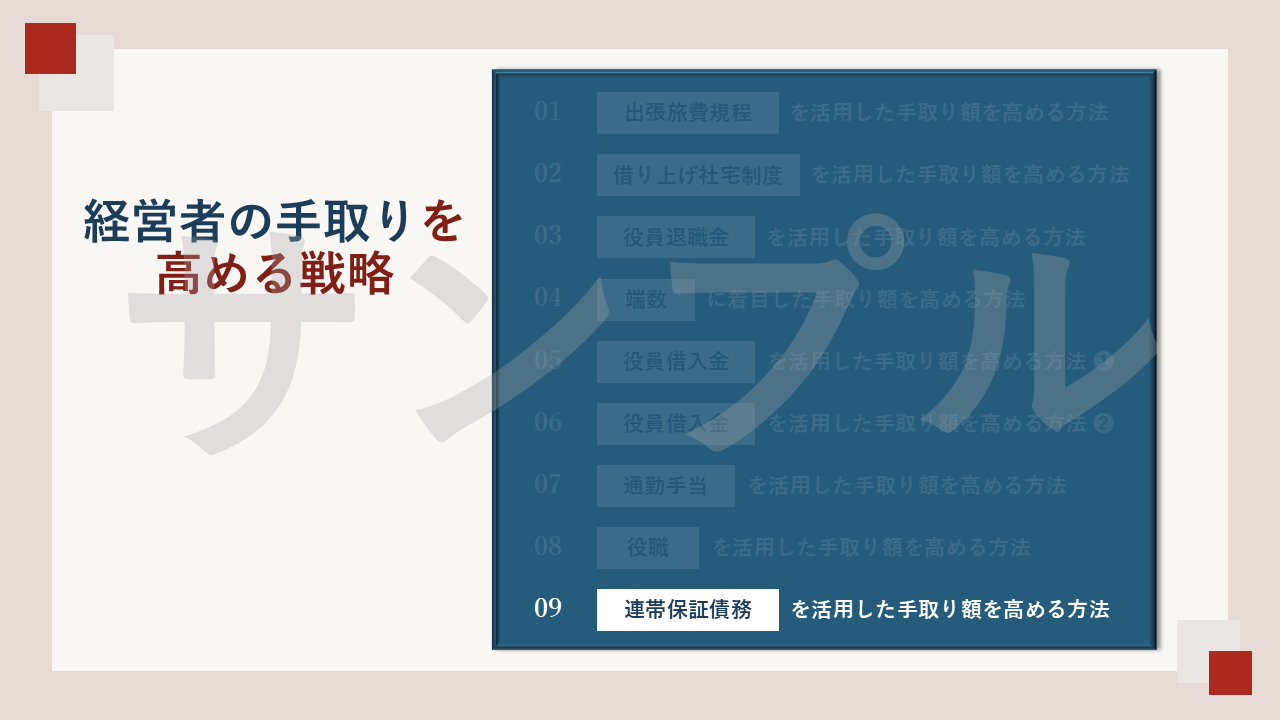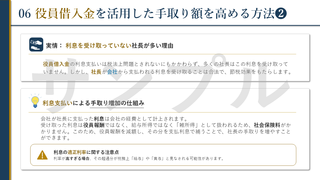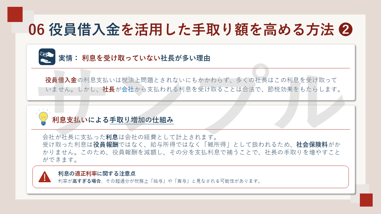 具体的な話し方のポイントをまとめておりますので、ぜひご自身で「経営者の手取りを高める戦略」セミナーの開催を目指してもらえたらと思います。どうぞよろしくお願いいたします。